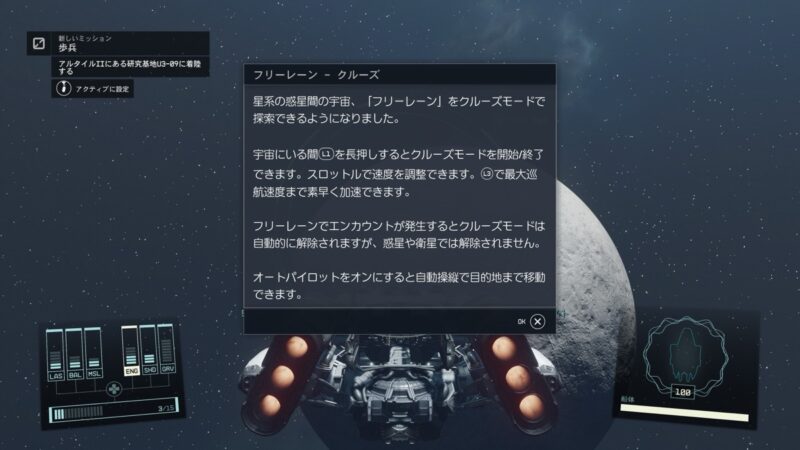 オートパイロットにすることで選んだ惑星まで自動で送ってもらうことも可能です。